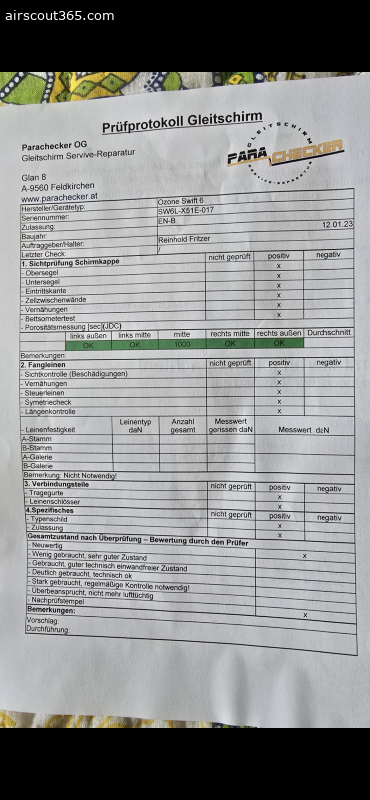 Technisch ist der Schirm in einwandfreiem Zustand (siehe aktuelles Checkprotokoll von PARA CHECKsiehe in den Bildern)