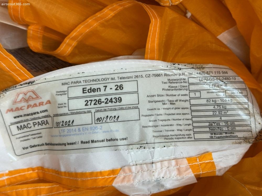 Ich verkaufe meinen gebrauchten Eden 7 Grösse 26 da ich nun C-Schirme von Mac Para fliege. Er ist einen guten Zustand mit ganz frischem Check gültig bis 09.2027 und dem Prädikat 88% Gesamtwertung, Porösität 92%. Er hat 212h und 231 Flüge drauf.Er hat mich super zuverlässig zu dem gemacht was ich bin (fliegerisch). Mit einer hervorragenden Dämpfung vermittelt er sehr viel Sicherheit. Man kann sich auf das Fliegen konzentrieren und muss nicht unnötige Informationen verarbeiten die einem nichts bringen. Er ist ein sehr guter Starter und in Semileichtbauweise aufgebaut. Er wiegt 4.75 Kg und kommt mit dem originalen Zellenpacksack und Handbuch.