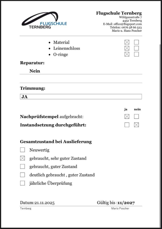 Kleiner Schönheitsfehler beim linken Loop, wurde fachmännisch von der Flugschule Ternberg geklebt.