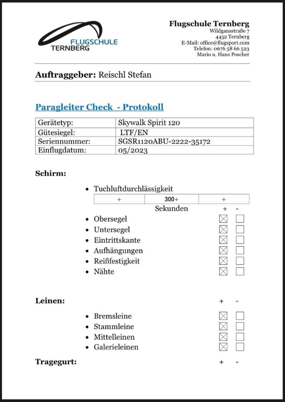 Skywalk Spirit 120 arctic blue - frischer Check