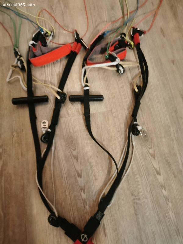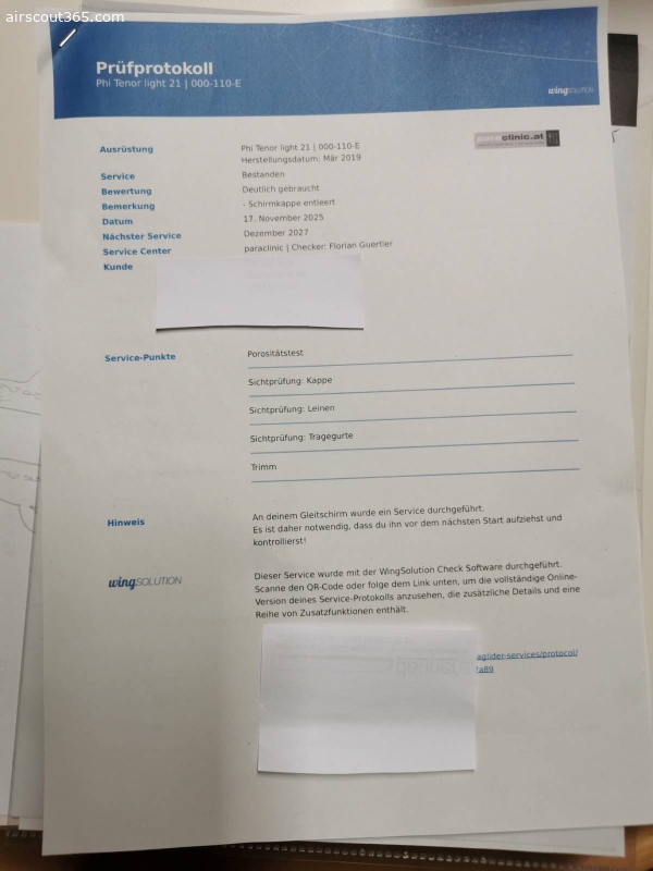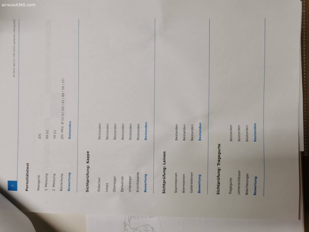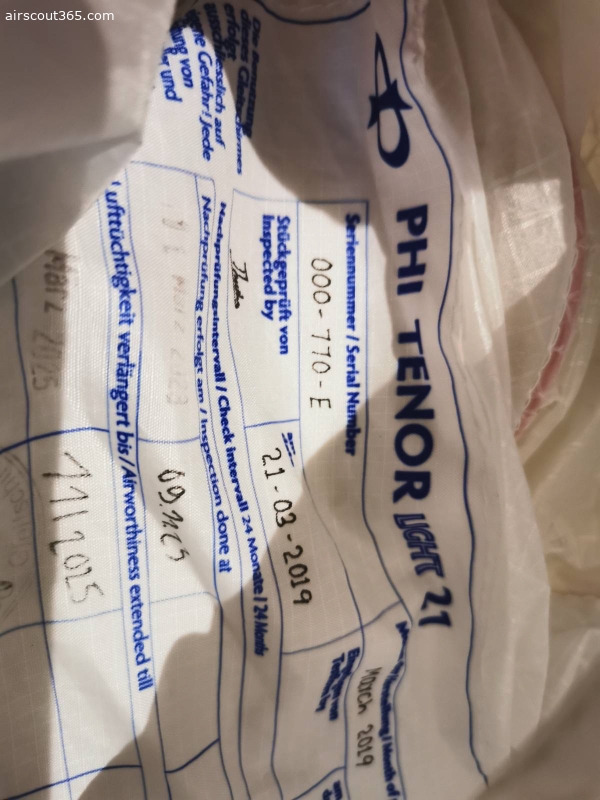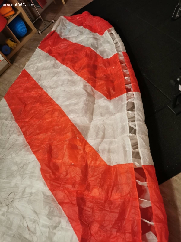 Schirm ist aus 2019. Ganz frisch gecheckt und getrimmt (genaues Protokoll gern per Nachfrage). Seitdem ungeflogen. Weitere 2 Jahre ok. Ist gebraucht, siehe Protokoll vom Check. Tuchwerte sind unverändert seit dem letzten Check. Weiss ist natürlich nicht mehr überall ganz frisch. Wie aus den Bildern ersichtlich war einemal eine Nummer geklebt. Habe ihn damals von einem Shop aus der Schweiz gekauft, deshalb die Nummer. Der Shop hat damals die Nummer noch selbst entfernt. Keine Löcher geklebt, etc. Kein Sand, Siv, Acro...Hab beim vorletzten Check die R07 Riser verbauen lassen um damit mehr mit B/C Steuerung fliegen zu können. Kann gern auch die altern Riser dazu geben, liegen bei mir nur rum.